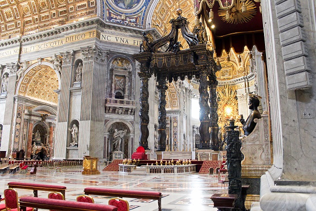 - Berniniho bronzový baldachýn z roku 1633 postavený nad hlavným oltárom je vysoký 29 m (približne ako veža urminského kostola).